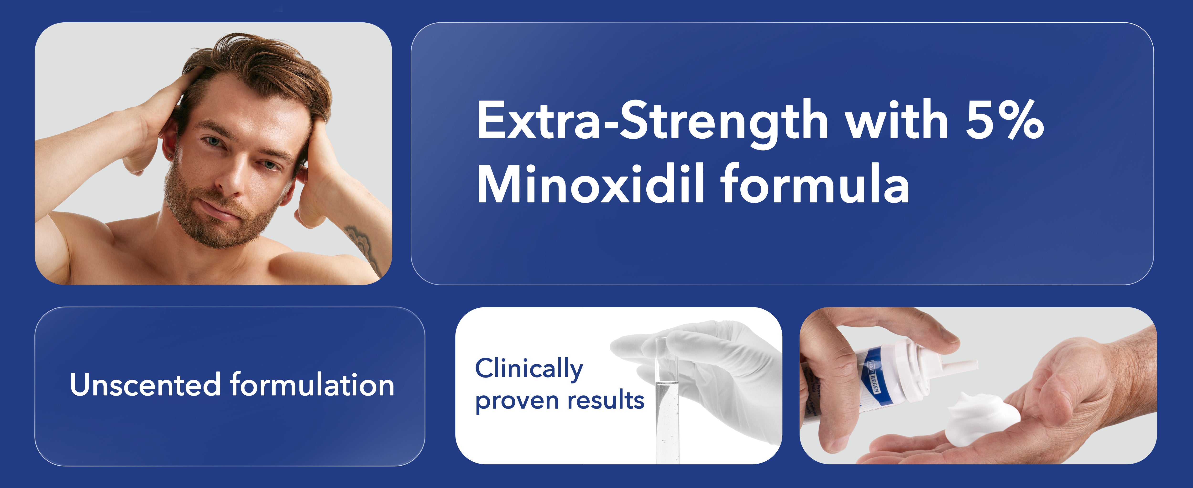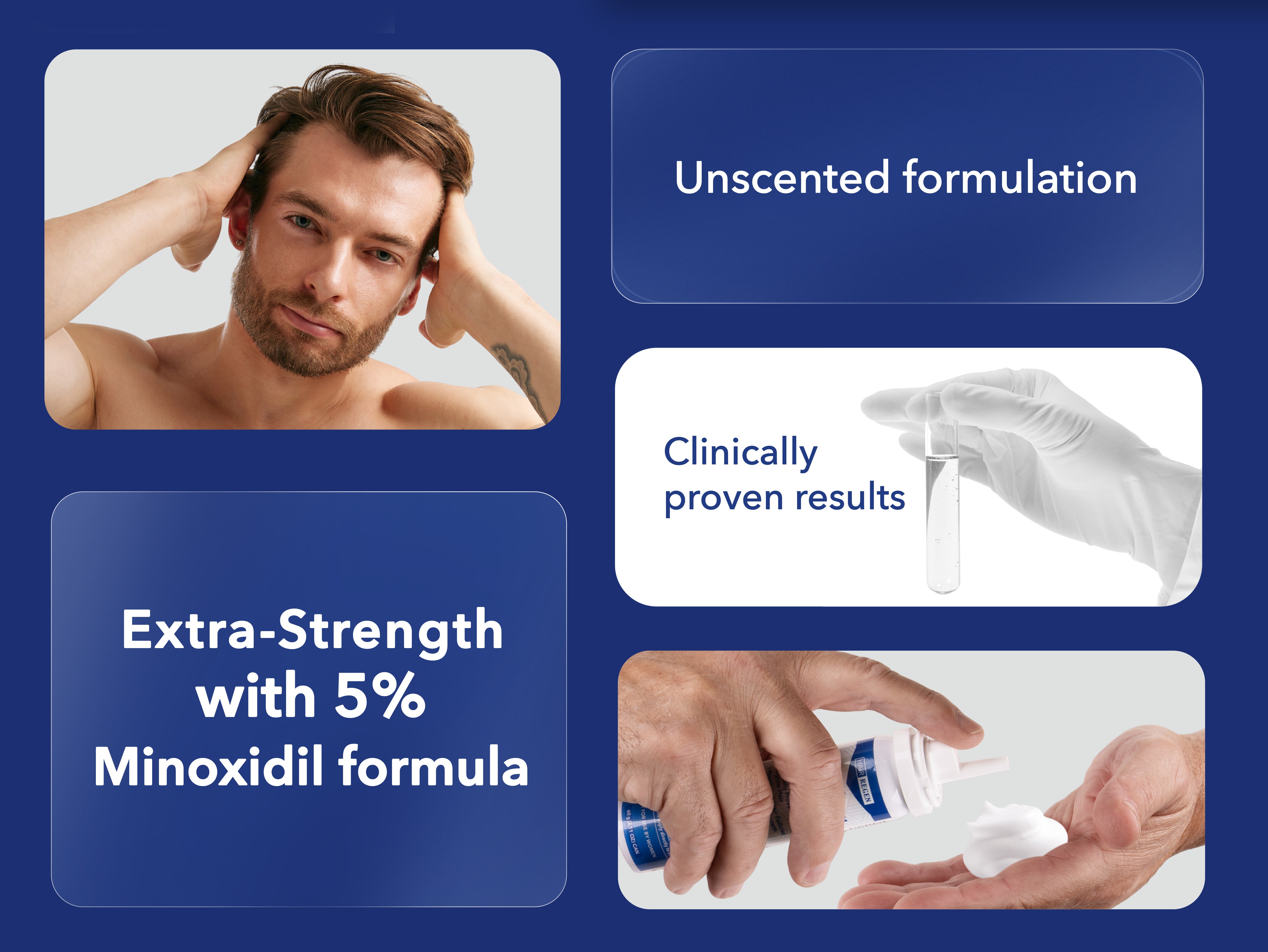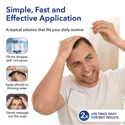 Hair-Regen with 5% minoxidil is clinically proven to help stimulate hair follicles and promote the regrowth of hair in men experiencing thinning or balding. By improving blood flow to the scalp, it supports the revitalization of dormant hair follicles and encourages new hair growth.